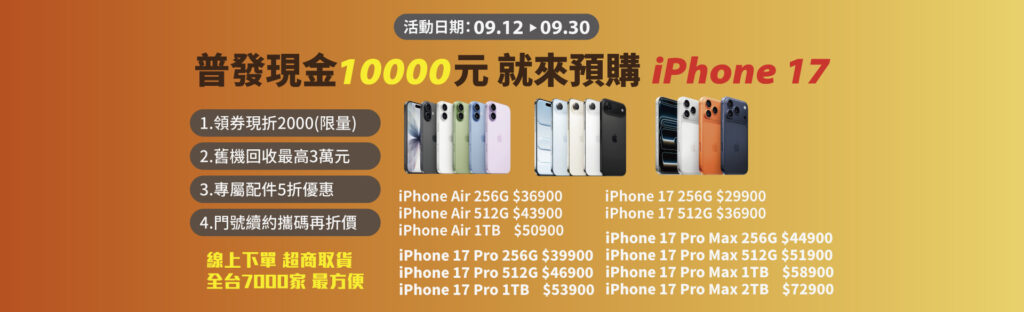 普發現金一萬元,就來預購 iPhone 17